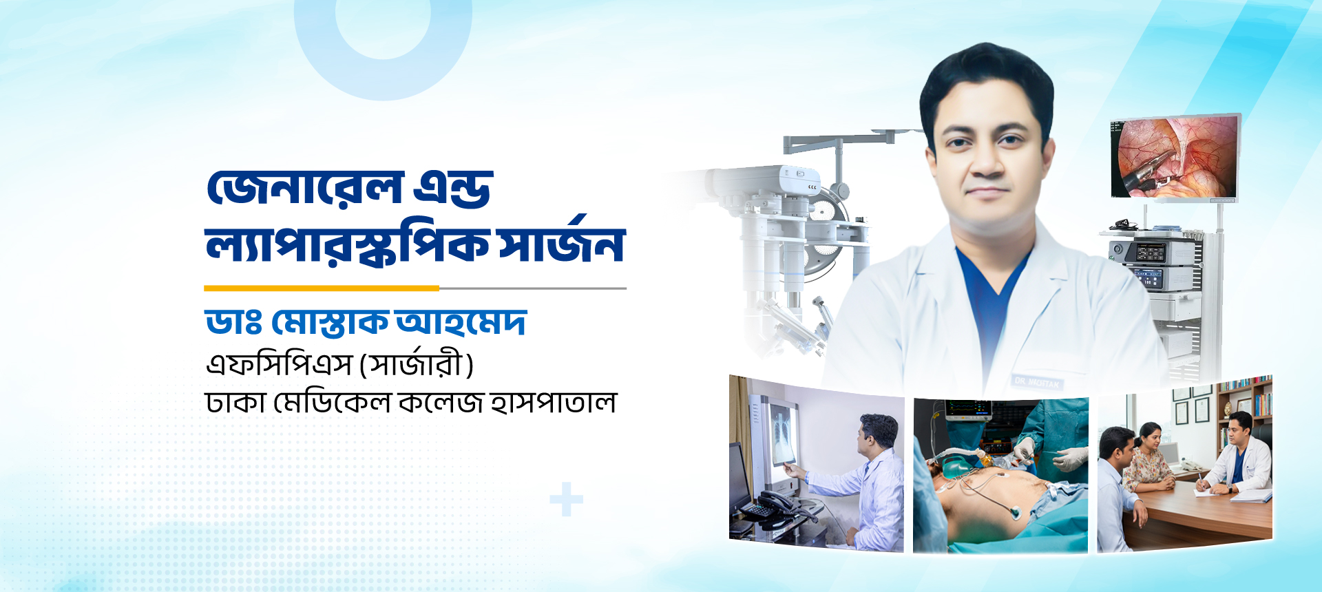 বিশ্বস্ত হাতে আধুনিক সার্জারি। অভিজ্ঞ ল্যাপারোস্কোপিক বিশেষজ্ঞ ডা. মোস্তাক আহমেদ নিশ্চিত করেন কম ব্যথায় দ্রুত আরোগ্যের চিকিৎসা।